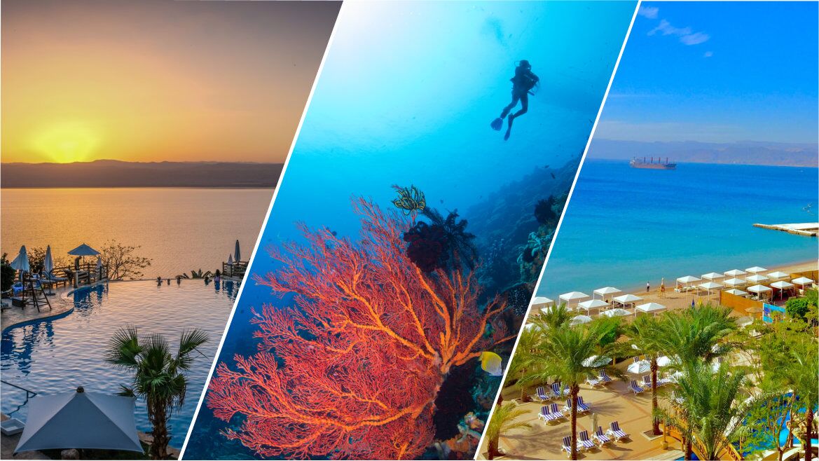 Aqaba, located in southwestern Jordan near the Israeli, Egyptian, and Saudi Arabian borders, is a favorite destination for both Jordanians and foreigners seeking to escape the cold winter weather. Sitting on the Gulf of Aqaba, not far from Egypt, the resort town enjoys balmy weather during the winter months, with temperatures seldom dipping below 70 degrees Fahrenheit (21C). Aqaba has been popular with beach-goers for quite a few years, but it is now attracting divers and snorkelers as well. Underwater sights include over 1,000 species of fish, and countless varieties of fringing and fan corals, sea grasses, sponges, invertebrates, and other forms of marine life.