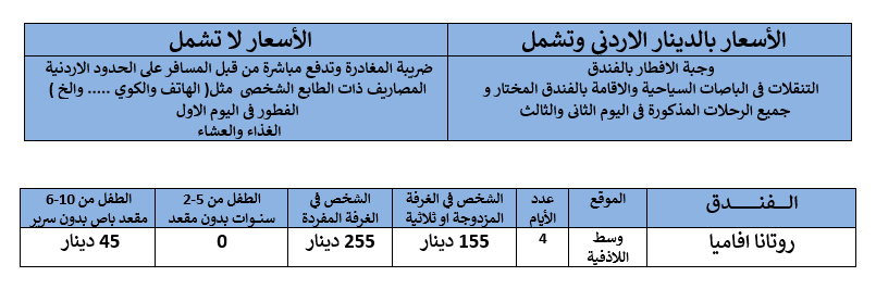 الانطلاق الساعة 1:00 فجرا الى الحدود الاردنية حيث يوجد استراحة قبل الحدود